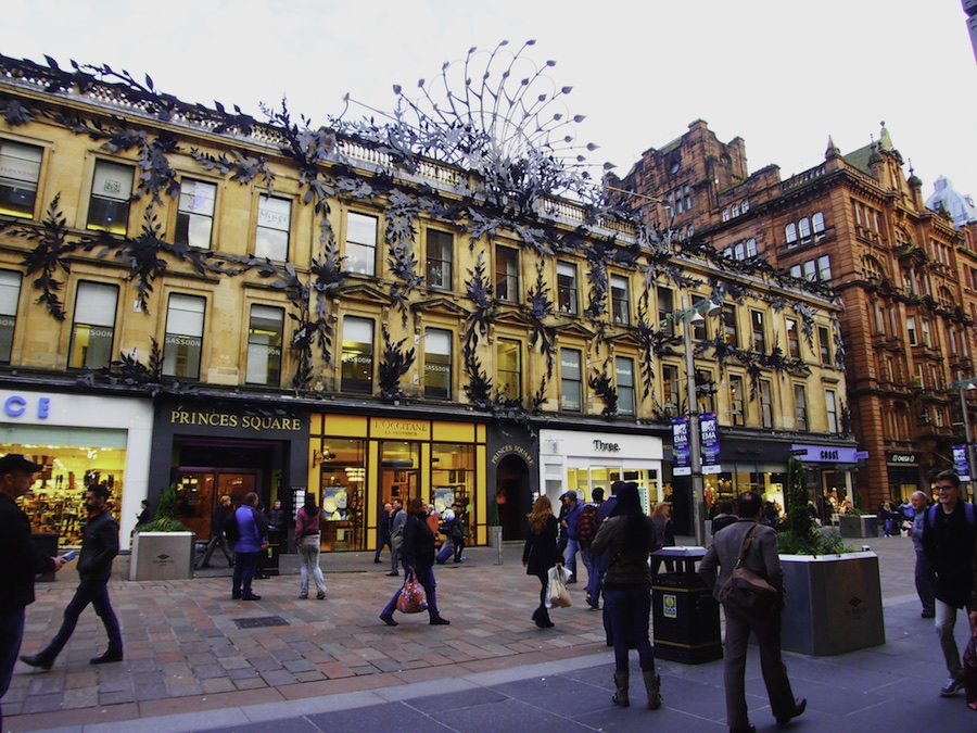 Princes Square Shopping Centre: With its magnificent peacock metal art façade, it is among several buildings that echo the art nouveau inclinations of Glasgow’s favorite architectural son, Charles Rennie Mackintosh (1868–1928).