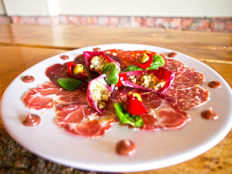 We began our recent Friday sojourn at the OX Cave with Quinta Soalheiro Alvarinho Espumante, a 2012 Portuguese sparkling wine, crisp acidity and bright, citrus flavors laced with fleshy peach/apricot notes. It was a perfect start to the evening as by sheer coincidence we were headed to Lisboa and the Algarve region the very next morning. Showing that, while still retaining inherent rivalries as side-by-side countries tend to, Portugal and Spain can complement each other, we followed this with Getariako Txakolina, a crisp, dry, lightly carbonated, white wine from the hondarrabi grape variety of the Basque region. A well-balanced charcuterie board of coppa, salami, bresaola and chorizo with assorted breads provided earthy grounding to the zesty wines.
