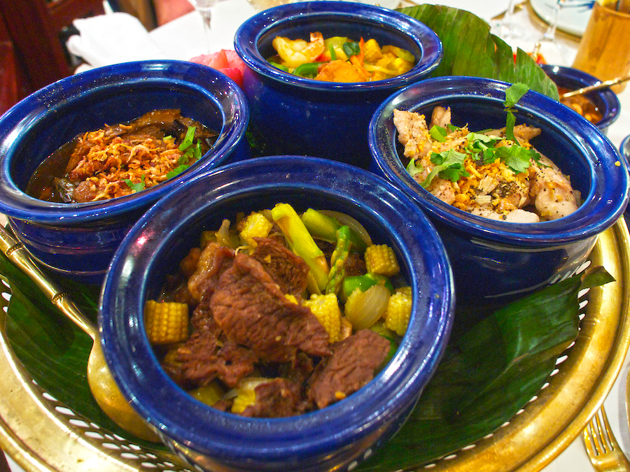 The sophisticated Blue Elephant Restaurant, lush with tropical foliage, flowers, exotic tapestries and a flowing waterfall and river feature, presents a variety of choices, both in food and beverage with the cocktail menu alone covering two full pages. Here, with seating for 220 people, both indoor and outdoor, I enjoyed a ‘Royal Thai Menu,’ a veritable feast of food.
