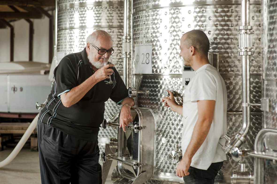 Luben Rabchev (left) tests tastes his latest wines.