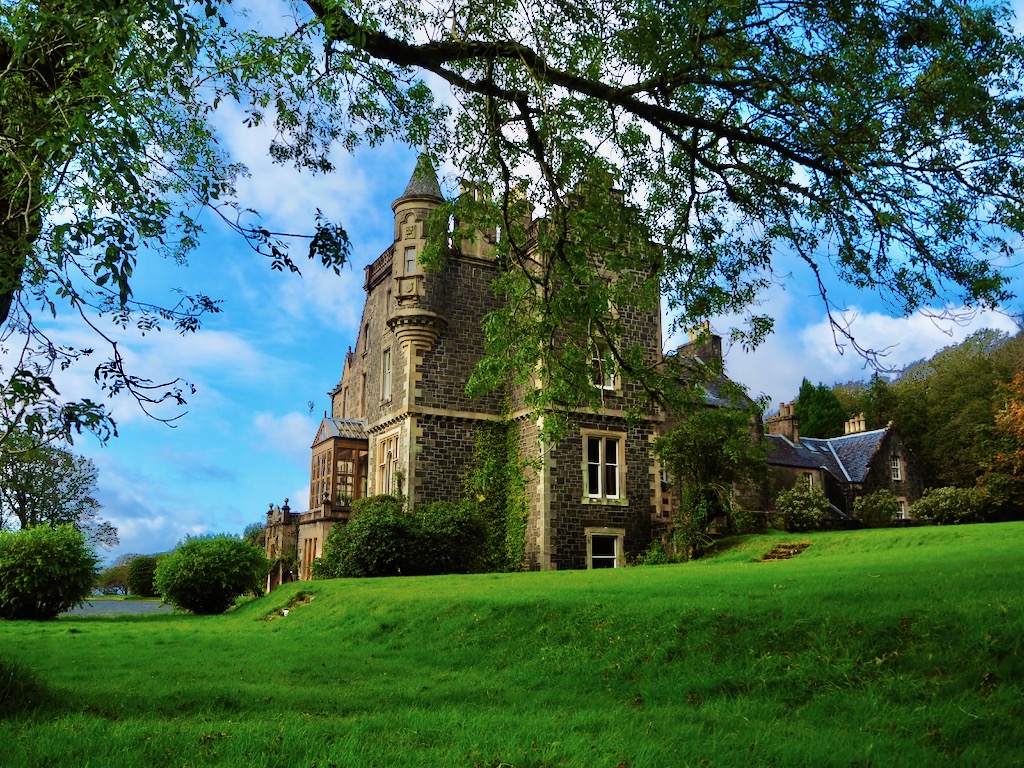 Built on profits made from harvesting sea-kelp and selling it for fertiliser and iodine, this is the family seat of the Maclean clan, now listed as an historic category B building by Historic Environment Scotland. Bestowing added pedigree, the family’s crest and motto are carved in stonework above the front façade.