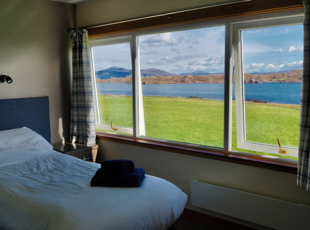 Our room, Number 5, was bathed in natural light that flooded in from two large windows. One granted uplifting views across a verdant green meadow to the sea and the mainland beyond, with a side view of the 12th century Benedictine monastery, believed to be the original site of Columba’s 6th century monastery.