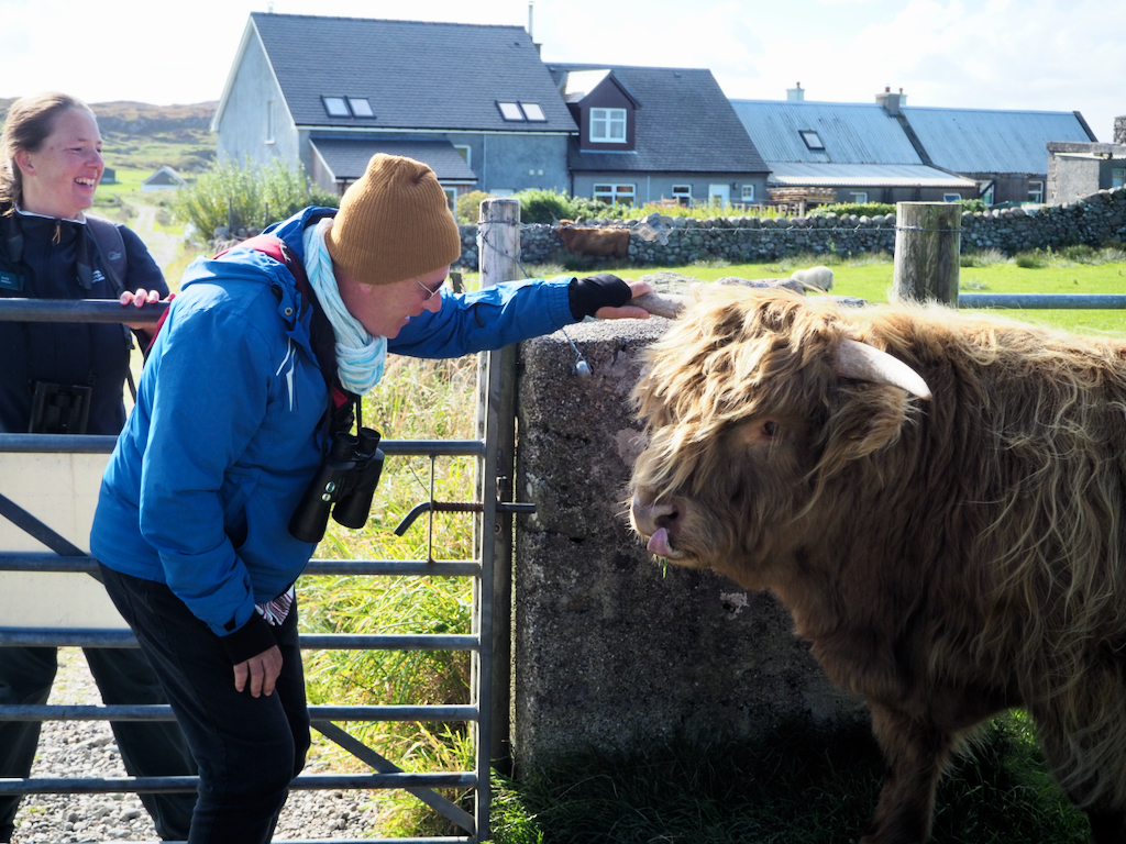 We enjoyed comprehensive walking tours with two separate, well-informed guides. One, Emily Wilkins is a member of the Mull and Iona Ranger Service, part of a community-owned development trust initiative to enhance quality of life. Starting our journey from her office beside the pier, Emily described the geological origins of the island, including gneiss dating back three billion years, pink granite and basalt, as well as ongoing traditional island activities such as crofting (small scale farming).