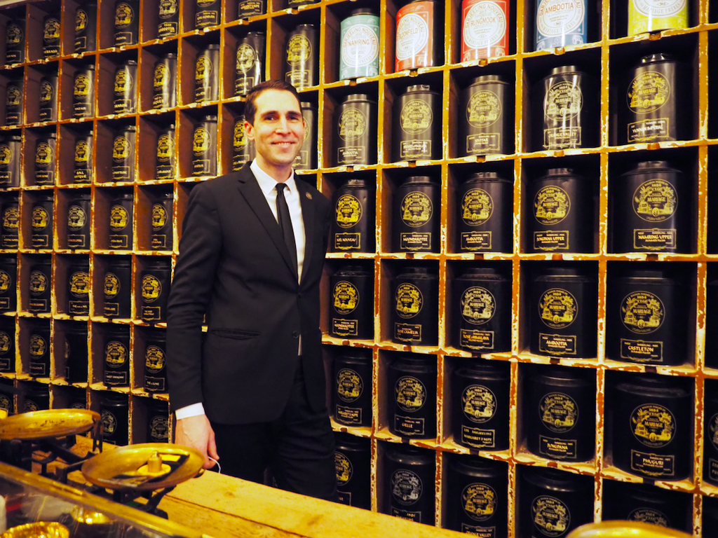 Entering Maison de The, the company’s flagship tearoom in the fashionable Marais district in the City of Light, means stepping away from bustling boulevards and back in time to an era of vintage wood floors and cubicles filled with giant tins of tea in a rainbow of colors containing, I was informed, more than 1,500 varieties from fifteen different countries, all of which customers can buy in the well-stocked shop.
