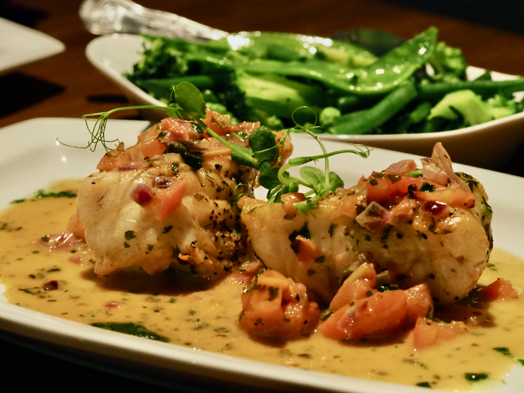 Our monkfish slept in a chablis sauce, its flesh so tender it seemed as it had been whipped like cream, proof not only of its ‘fresh-from-the-sea’ flavor but the skill in not over-cooking. It was accompanied by Provencal-style vegetables, tiny morsels with herbs that, according to my poetic companion, “seem to have been cooked separately, then brought together like in a choir, to sing together.”
