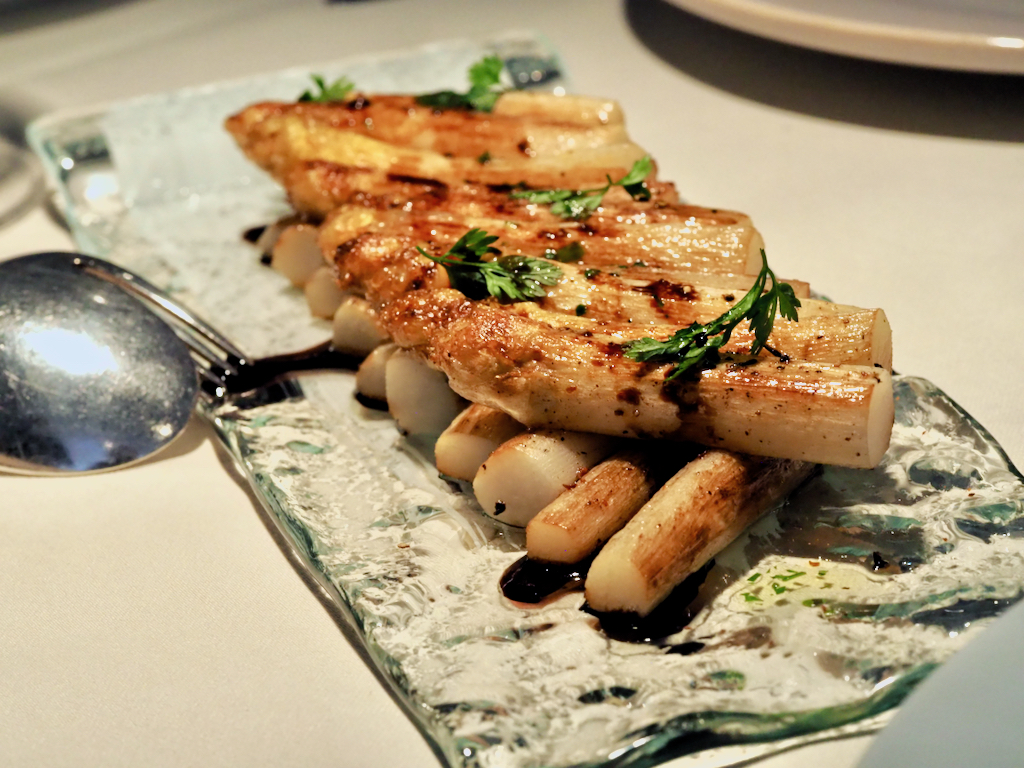 Slices of seared Mediterranean bluefin tuna followed with orange sauce, olive oil, oregano, sun-dried tomatoes and capers, as well as carpaccio of Piedemonte veal with wild asparagus and hazelnuts, all prepared by chef Cattaneo Matteo. Our mains comprised vegetarian lasagne with zucchini and fresh peas and aubergine caviar and St Peter’s fish, or tilapia, with fava beans, seaweed sauce, bottarga and white asparagus.