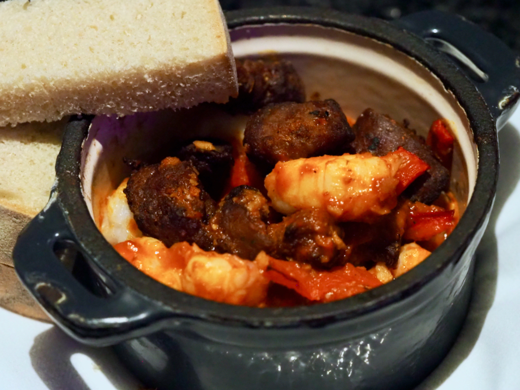 Aside from our ‘live entertainment,’ we also enjoyed the food – a starter of squid with salt, chilli, coriander, lime and aioli, followed by roast monkfish with spelt risotto, tender stem broccoli and red wine vinaigrette and ribeye steak with sauté spinach, confit beef tomato and peppercorn sauce. We eyed the list of succulent desserts such as apple and cinnamon flapjack crumble with vanilla bean ice-cream and vegan Knickerbocker Glory but it being so near bedtime …alas, it was not to be.