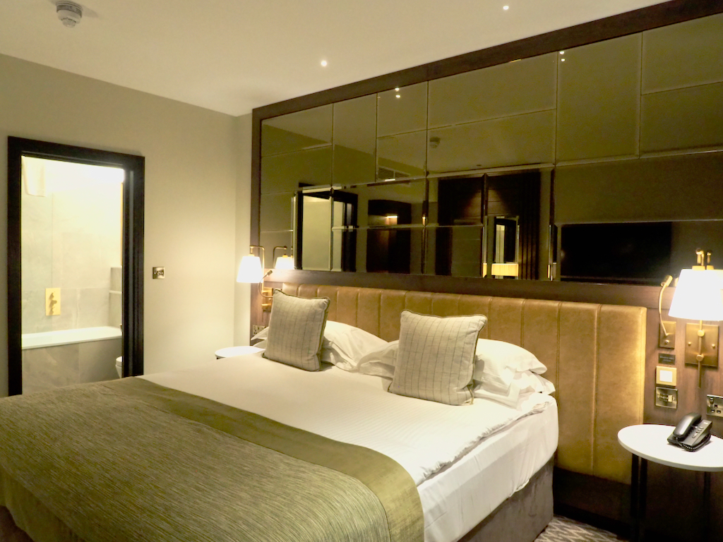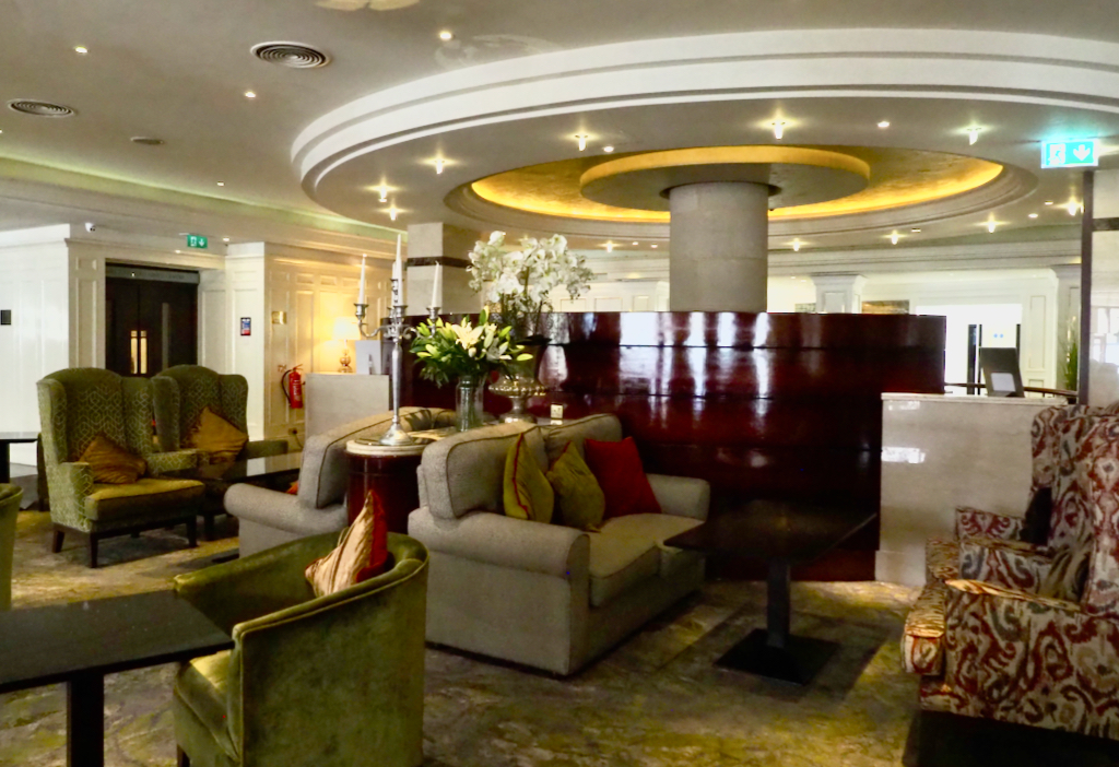 A grand entrance off busy Great Victoria Street leads into the hotel’s spacious rotund lobby with its ornate columns and gleaming marble floor, the reception desk being straight ahead, a bar to one side and a restaurant on the other. A winding staircase leads to the first-floor Piano Bar where traditional afternoon tea is served.
