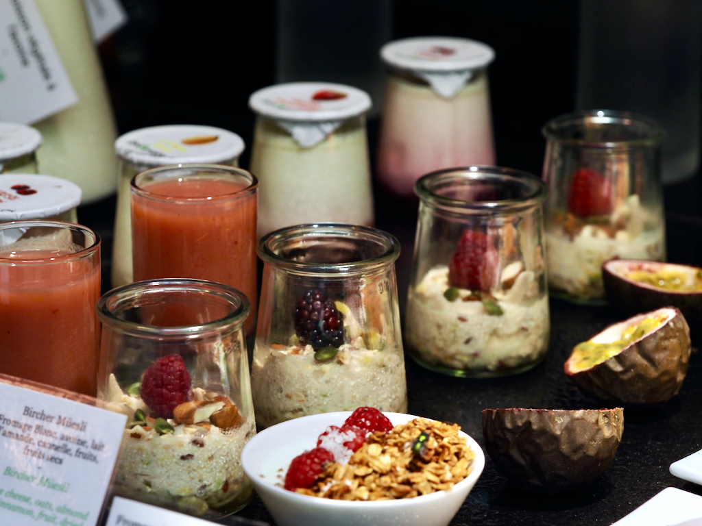 Due to efficient use of physical space, breakfast selection at Villas Foch seems on first glance to be limited but in actual fact it is impressively diverse. Consider, for example, eight different kinds of jams including a combination of rhubarb with tonka beans, eleven different bowls of dried fruit, nuts and seeds as well as fresh fruits including bananas, strawberries, blackberries, apricots, melons, blueberries and passion fruit. Not to mention the staples of scrambled eggs, salmon, cheeses, cooked tomatoes, spinach and various breads, including banana with chocolate, and of course, the iconic croissant.