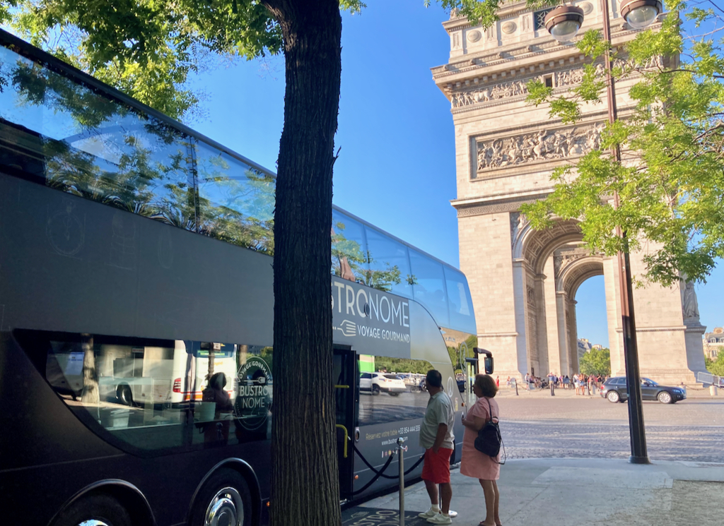 Welcome to Bustronome-Voyage Gourmand, an innovative addition to the tourism offer of Paris launched by entrepreneurs Jean-Christophe Fournier and Bertrand Mathiew, that takes passengers on a three-hour voyage through the famed City of Light while enjoying a delicious onboard 6-course dinner with accompanying drinks. Lunch options are also available.