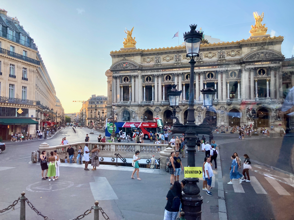 Among the twenty sights the bus passes are Opera Garnier; the Louvre, the largest building in Paris and largest museum in the world; Notre Dame Cathedral; the Eiffel Tower; and Musee d’Orsay.