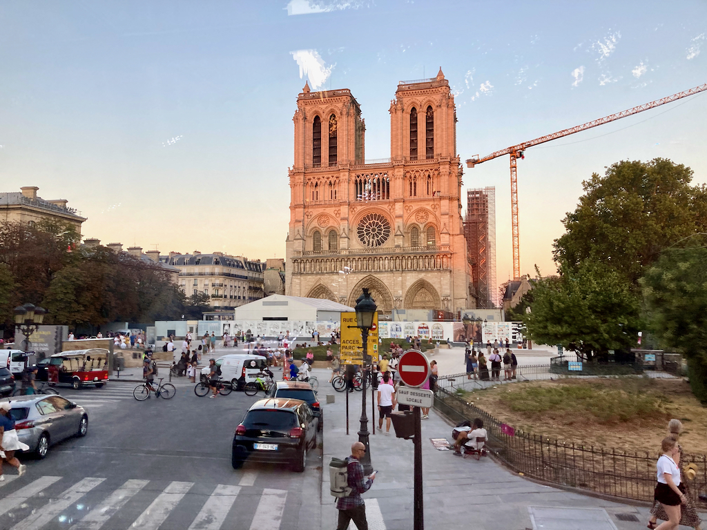 And in front of Notre Dame Cathedral, we enjoyed a main dish of beef and risotto with carrots and peas.