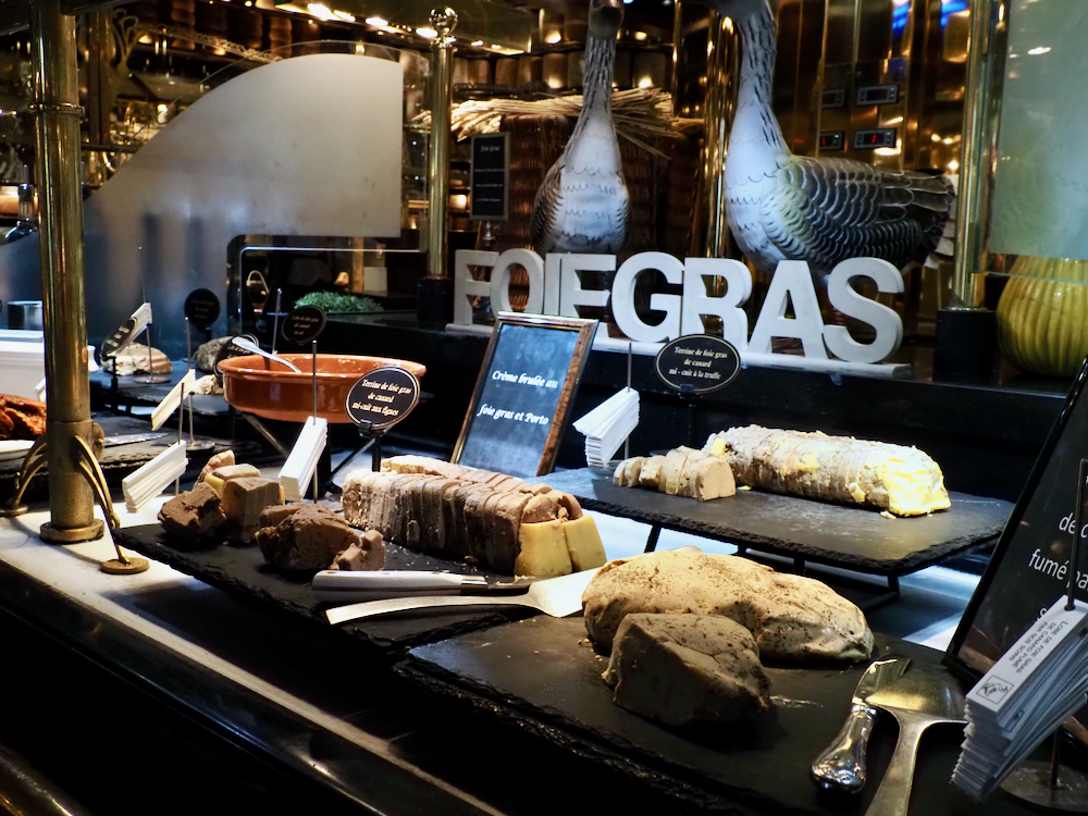 Foie gras is served in nine different ways including with truffle or Basque pepper; there are five homemade paté en croute and more than 111 varieties from every region in France at the record-breaking cheese station.