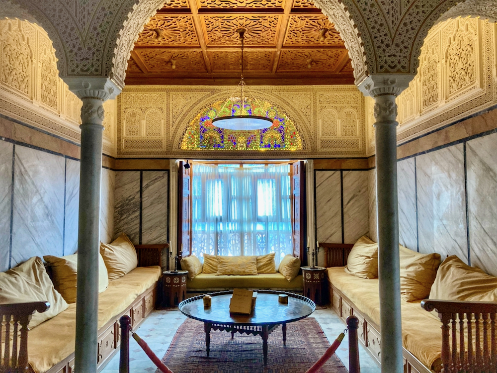 Highlight of a visit here is Dar Ennejma Ezzahra, a palace-cum-museum and the former home of banker, painter and music collector, Baron Rodolphe d’Erlanger. Wander its interconnecting rooms, a fascinating mix of Modernist architecture and traditional Maghrebi and Andalusian design featuring a central fountain, carved stucco and wooden inlay, marble floors and columns and ornate furniture.
