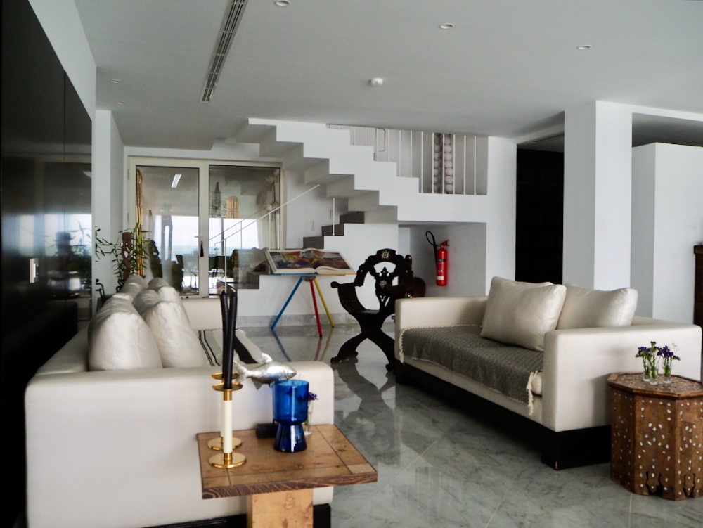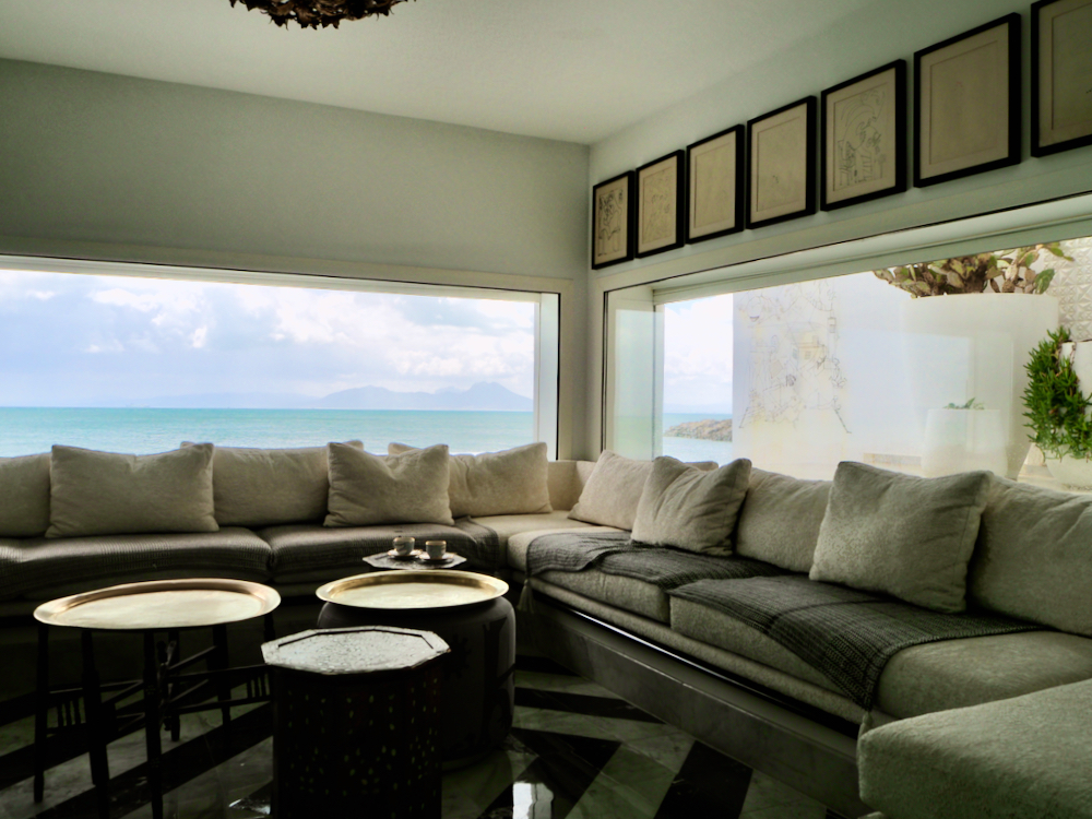 Named after its owner Nebil Sinaoul, so close is this five-room, marble-floored mansion to the sea, guests are serenaded to sleep by the rhythmic waves riding in from the Gulf of Tunis. Floor-to-ceiling windows in a lounge on the first floor grant panoramic vistas across the water as birds flit across the glittering waters.