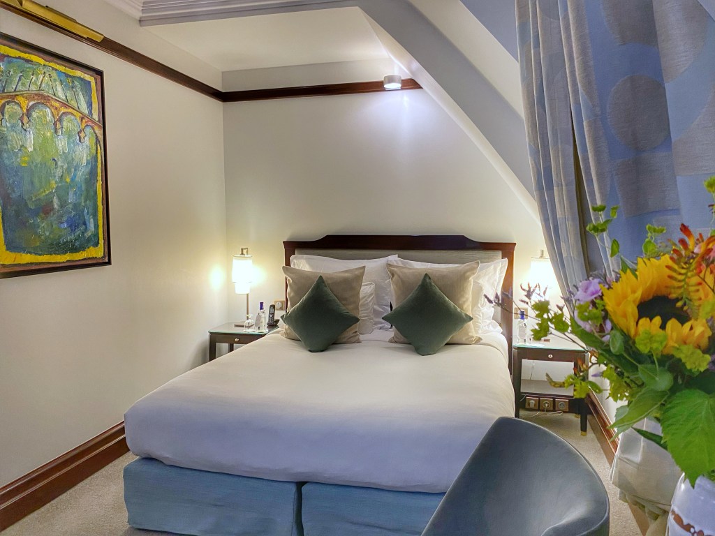 As for food, breakfast buffet-style is served in the hotel’s cosy ground-floor room, Salon Mosaic, adjacent to the lobby, with an abundance of natural light flowing in from a Japanese garden beyond floor-to-ceiling windows. Choice is plentiful, from fresh fruit and cheeses to salmon and cold cuts and eggs cooked to order.