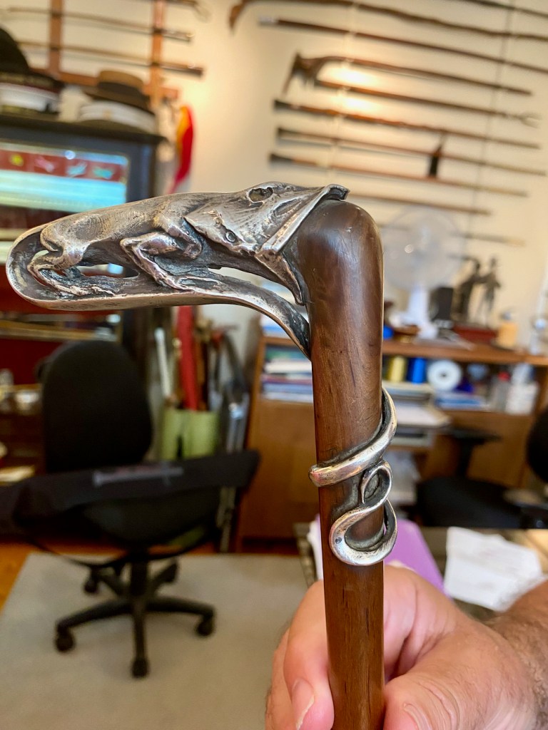 Then there are the ‘decorative canes’ made from a wide variety of eclectic materials including the tail of a stingray, snake spine, ram’s horn, shark cartilage, tortoise shell, warthog tusk, slices of paper, the skin of a hippopotamus, porcelain, plexiglass and straw. Others are made from ebony, snakewood, silver and even gold.