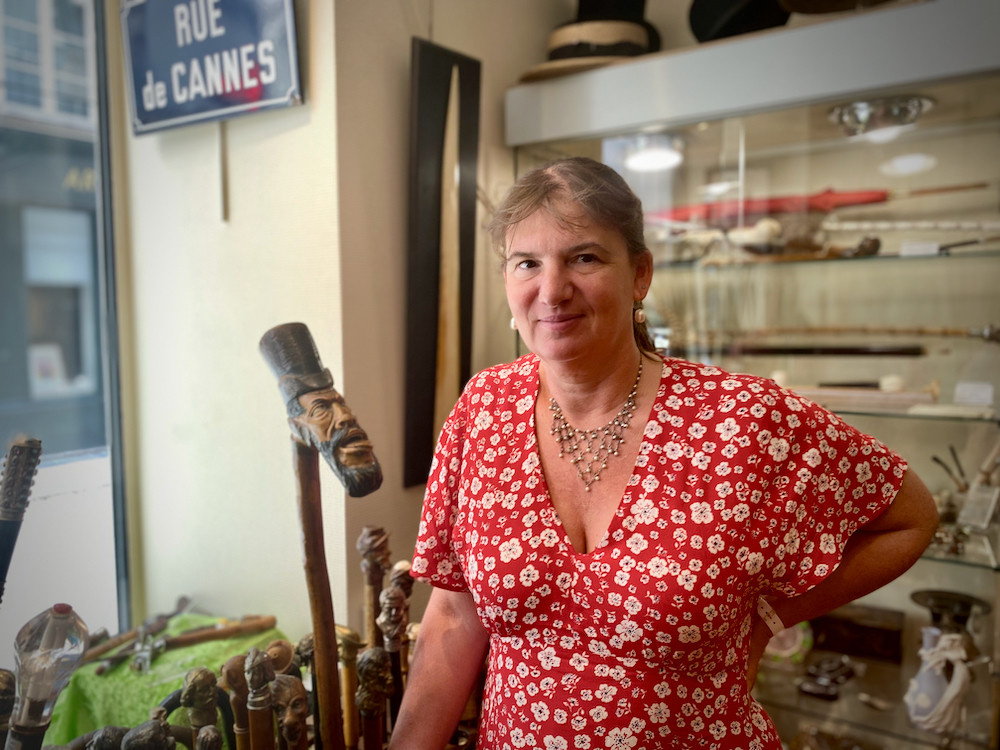 Step through the door and continue to gaze in wonder around a charming interior filled with more than 1,000 canes of all kinds, a veritable treasure trove of curiosities collected by Chloe Jantzen (54) and her now deceased mother, Laurence. The latter started her collection of canes 40 years ago, focusing on antique ones, first in Versailles, in ‘au passage de la Geole,’ a place for antique dealers, then in ‘Le Louvre des Antiquaires.’ In 2014, Chloe, bored working for international companies, joined her mother. In 2015, they moved from ‘Le Louvre des Antiquaires’ to their shop, ‘Galerie Jantzen,’ in the ‘Carré Rive Gauche,’ well-known for antique dealers.