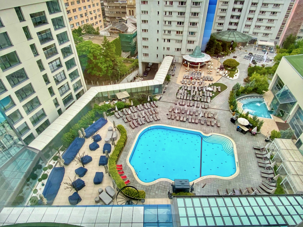There were many highlights to my stay at this hotel, perhaps too many to mention. But some included relaxing on the eighth-floor Executive Lounge with complimentary tasty foods and refreshing drinks and panoramic views over the Bucharest skyline, including the impressive Palace of Parliament building, as well as dining alfresco in the poolside area.