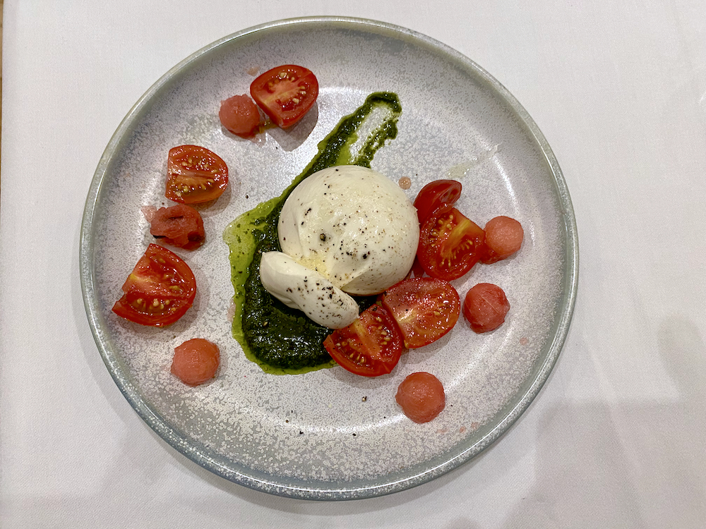 Main dishes extend the restaurant’s diversity. My companions both chose dry heat cooked turbot fillet with artichoke purée, asparagus and bisque while I enjoyed ravioli burrata, with chanterelle mushrooms and tomato coulis, one of several pasta dishes on the menu including tagliolini with octopus, prawns and calamari and spaghetti with organic egg yolk, cured meat and Pecorino Romano cheese.