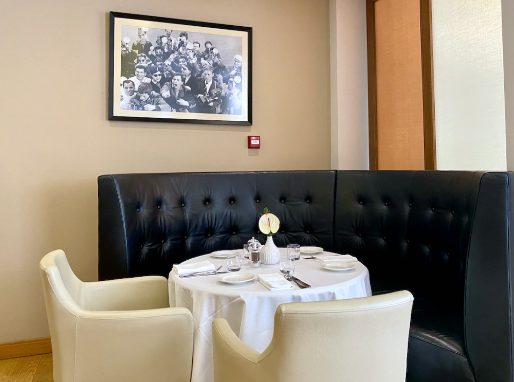 Roberto’s is a 1950s themed Italian restaurant featuring framed black and white photos of movie stars such as Sophia Loren and Gregory Peck along its walls. Seating is either inside, or alfresco on a large terrace with oversized white umbrellas shading guests in summer when temperatures often reach the mid-30 temperatures in Bucharest. My companion and I dined here one evening with Adrian Miholca, long-time Romanian friend and former colleague at our publishing company.