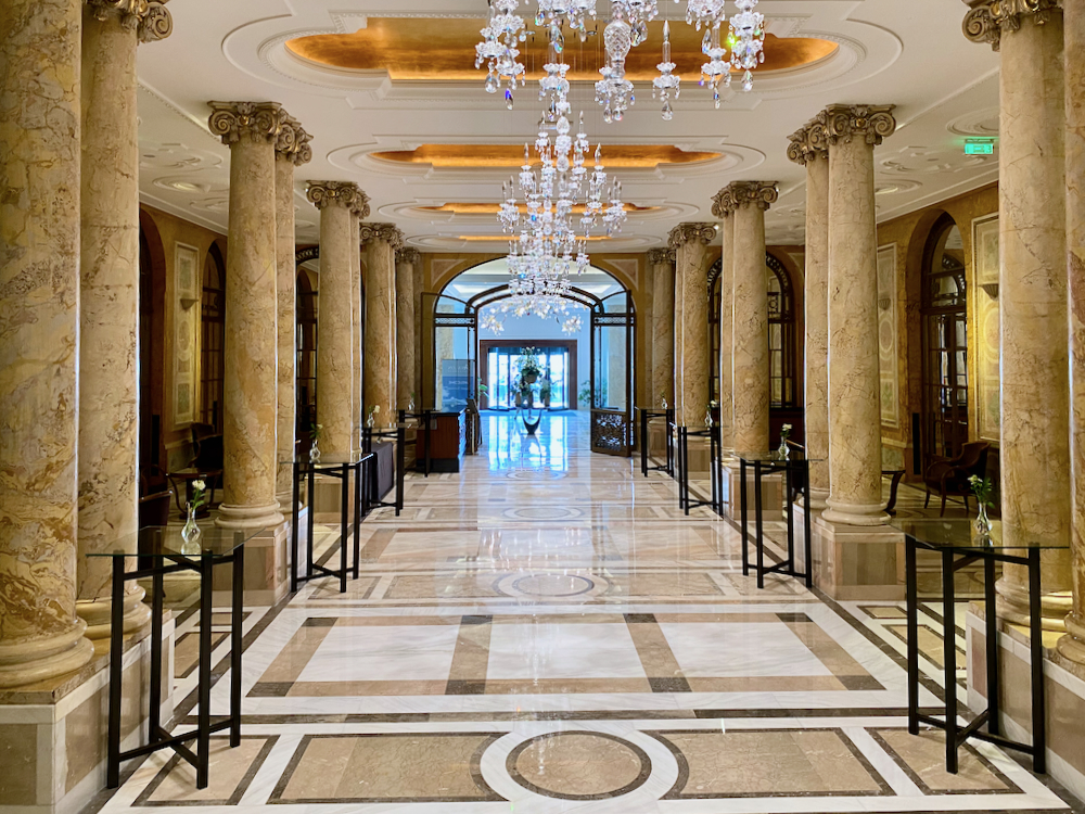 Gazing beyond the foyer, my eyes rested upon a row of glittering chandeliers leading along a glistening marble corridor past two ballrooms facing each other to the English Bar and Roberto’s restaurant side-by-side at the far end.