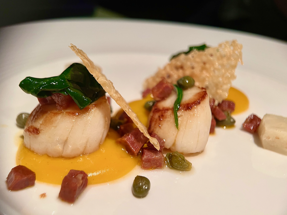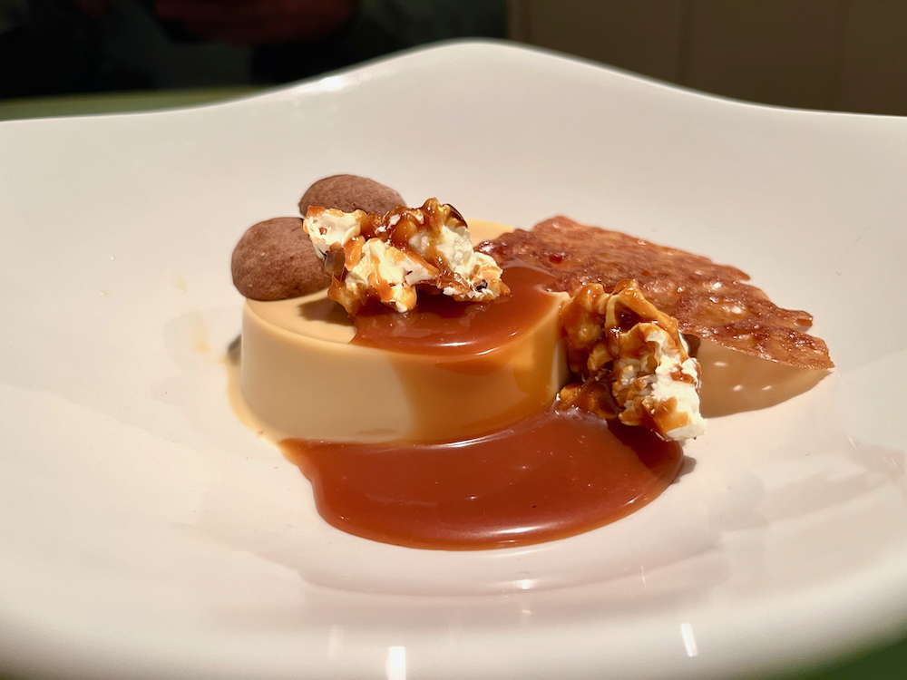 Our three-course meal included scallops with wilted spinach and chorizo on a bed of mango, tender ribeye steaks and crème brûlée with apple cider and shortbread and salty caramel panna cotta with popcorn as desserts. Our servers, Daniel and Ana-Marie were both friendly and efficient.