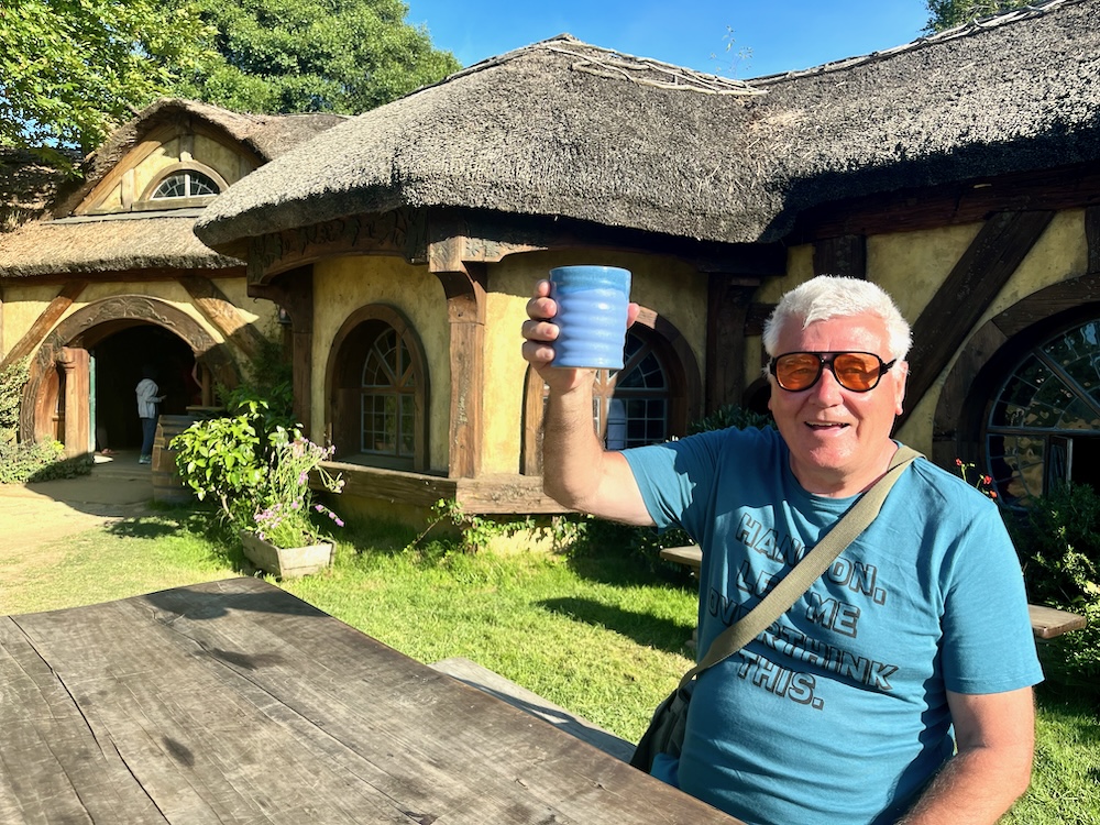 After arriving at The Hobbiton Movie Set, my companion and I lingered at the cafe and ice-cream stall at the charmingly-entitled ‘Shire’s Rest’ before departing by bus for the 15-minute journey to the outdoor set, with an onboard television enroute showing key scenes from the movies.