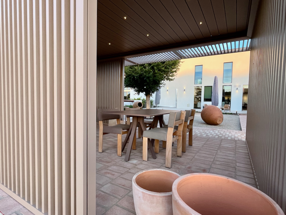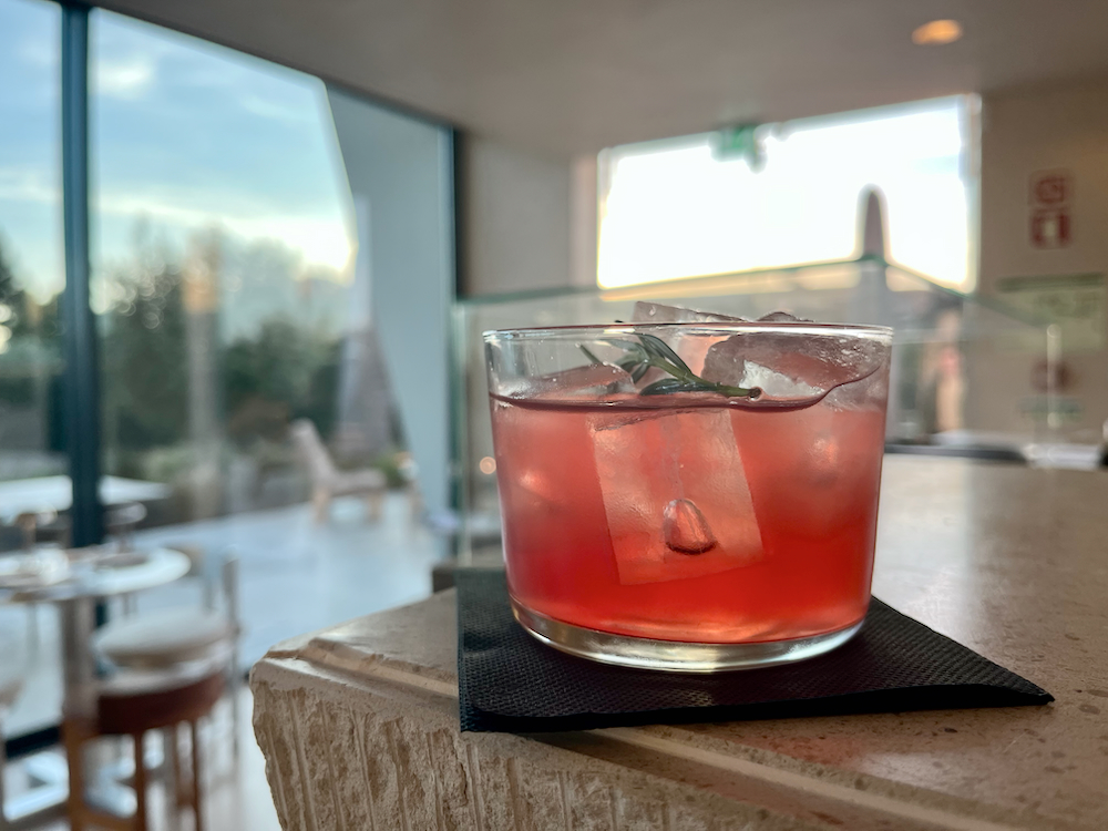 With floor-to-ceiling windows, the restaurant’s interior features a modern minimalist design with a nod to local influences. Seat benches are made of salt blocks that resemble bronze-colored marble, the clay-like walls are meant to resemble traditional Algarve construction and much of the furniture is made from local acacia trees.