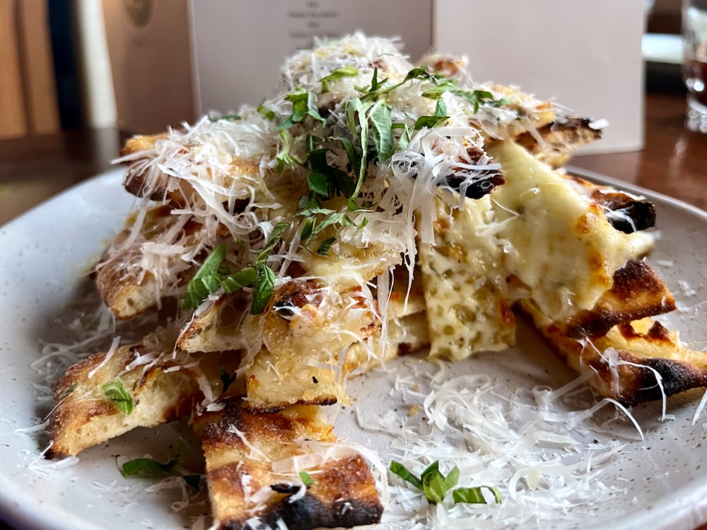 Being lovers of garlic bread, we ordered the pizza version with parmesan to start, which arrived as a small pile of slim cuts on a plate feathered with cheese and parsley. Under the heading ‘cicchetti’ meaning ‘small snack’ we also ordered talatta anchovies with charred ciabatta, the sweet and tender fish arriving glistening with olive oil in a small tin.