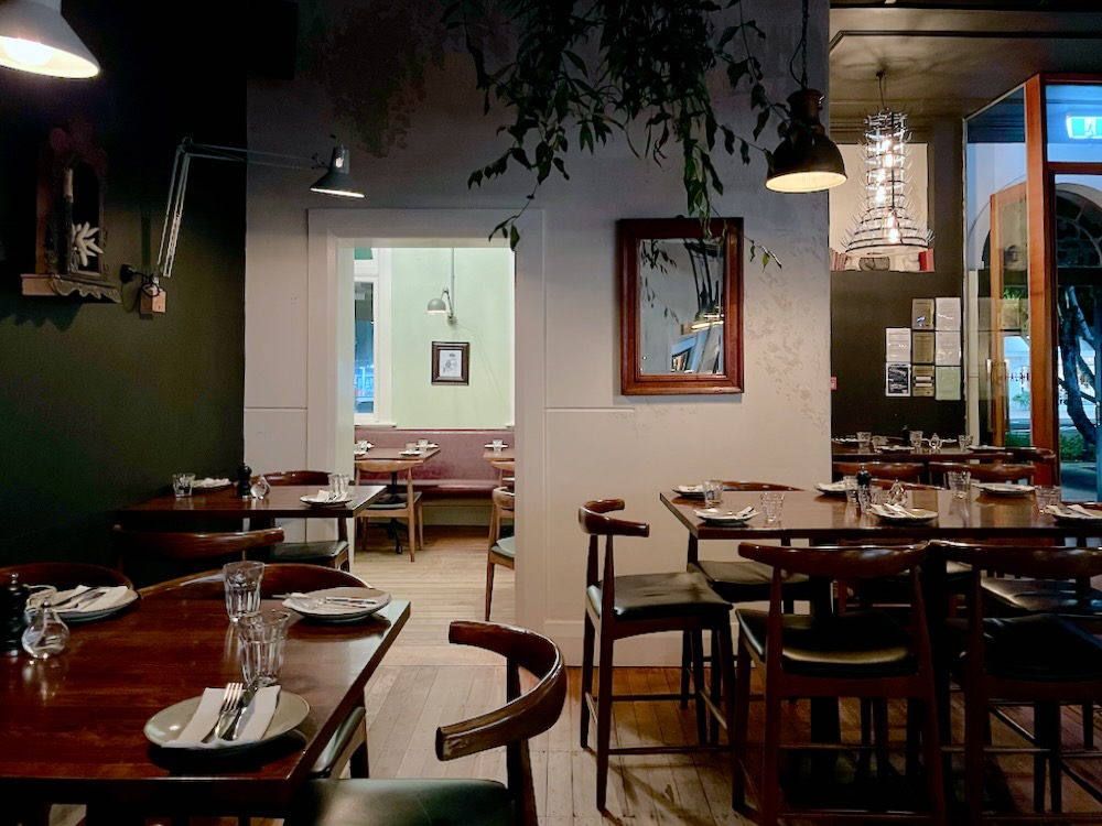 One of several restaurants owned by Noel Cimadom, from northeastern Italy and his Kiwi wife, Kim, it serves traditional Italian dishes in a large dining room with an open wood and metal bar in the middle and vintage furnishings such as clerk wall lamps from its days as a post office dating from 1908. In a side room, a mattress with a chandelier hanging on the ceiling are elements of Noel’s childhood in Italy, we were told.