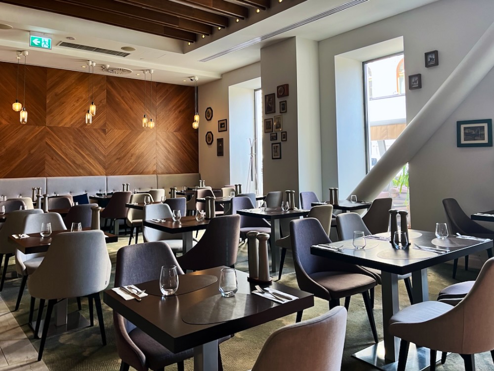 Breakfast is also served in the Beef Room, its interior designed with an arrangement of mirrors decorating one wall and framed vintage portraits and photographs of 19th century Bucharest on another, with potted plants on shelves adding a touch of Nature to the overall ambience. Here among the buffet selection I discovered traditional Romanian dishes including salata de vinete (eggplant salad), icre (fish eggs) and zacusca (a blend of slow-cooked vegetables), as well as locally produced cheeses such as telemea.