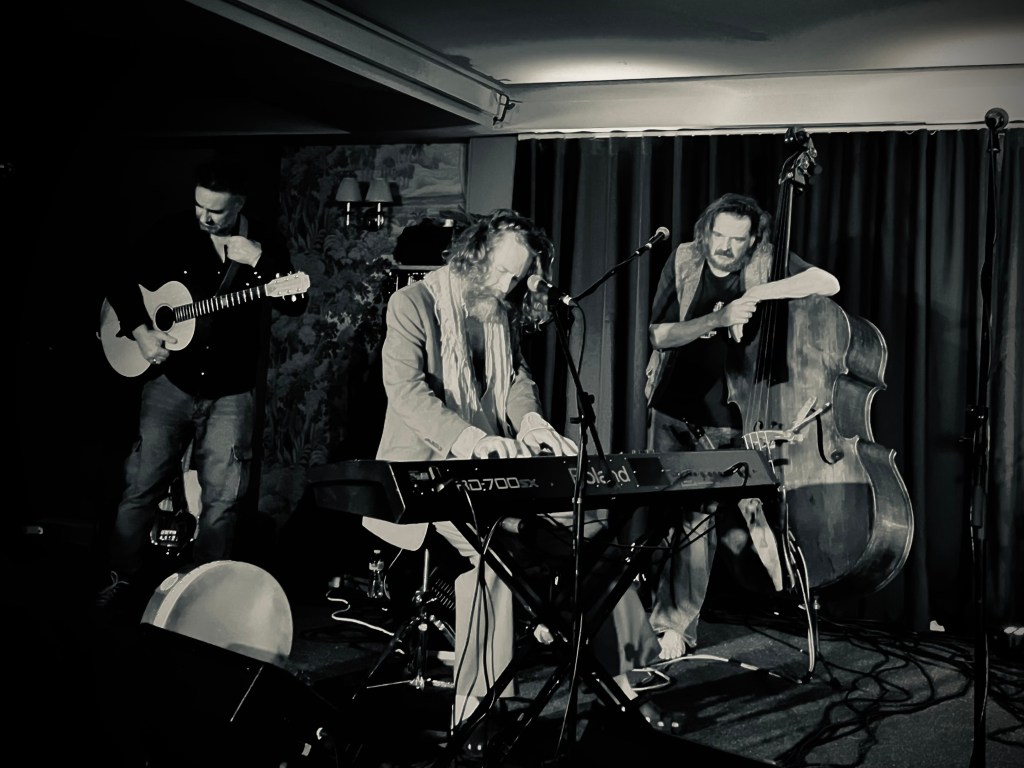Dublin-born singer-songwriter-musician O’Maonlai – who an acquaintance said must have been the model for ‘the Dude’ in the Coen brothers cult movie The Big Lebowski – rocked the house at Social Live Gaoth Dobhair last night with three hours of songs and music ranging from the Donegal traditional Irish-language ballad, ‘Báidín Fheilimí,’ to his creative version of classic hits such as ‘I Can See Clearly Now’ by American singer-songwriter Johnny Nash.