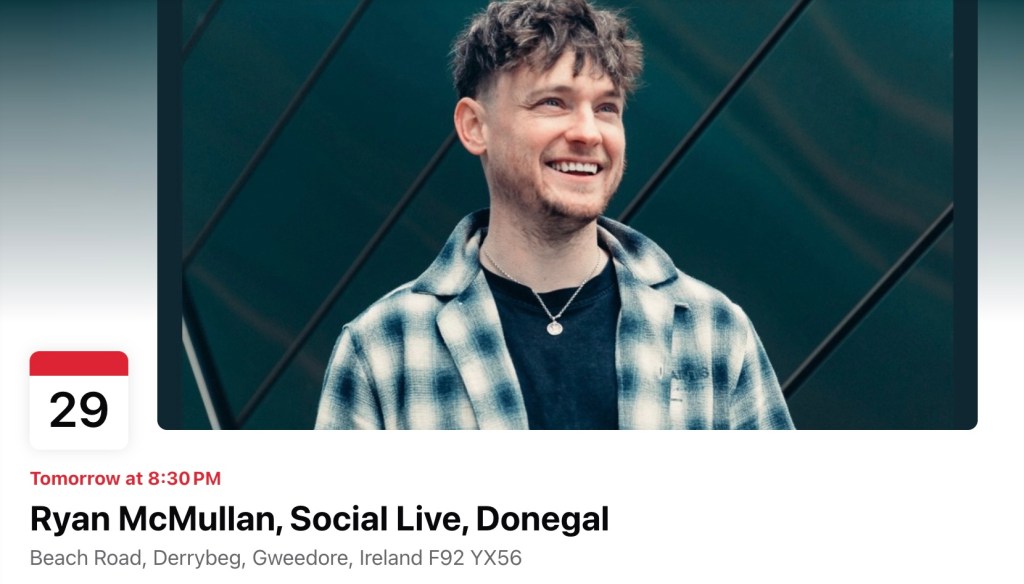 And that’s just one part of this weekend. Shane, a gifted concert promoter, has also lined up Ryan McMullan and his band for tomorrow (Sunday) night, doors open 8.30 pm.