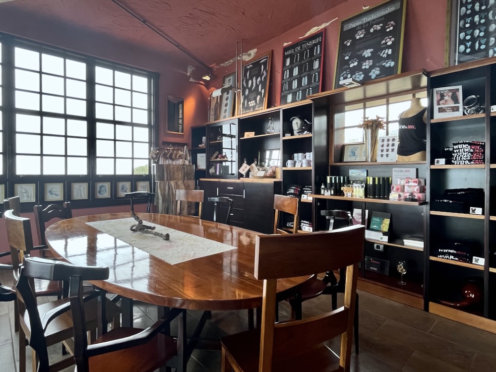 Located near the coast in the northern part of the Spanish island close to La Laguna, Tenerife’s old capital, the restaurant, reached through a wine and souvenir shop, is housed in a spacious open room with terracotta floor, sloped tiled ceiling, sturdy wooden furniture and decorative hanging lanterns. Floor-to-ceiling windows offer clear view across a large paved outdoor terrace to the sloping vineyard beyond.