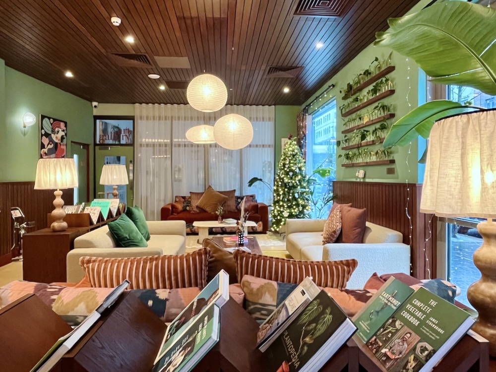 room2, like many of the other hotels in the fast-growing group which already stretches from the heart of west London to the harbour side of Southampton, is an eco and pet-friendly hotel. My medical herbalist companion was delighted to see a vast array of plants in pots as natural decoration. In addition, in a cosy room on the other side of the lobby featuring soft sofas and shelves of books on subjects ranging from travel and art to food and photography, is what’s termed a ‘plant cutting propagation station,’ as many as a hundred plants in transparent vials with a temperature monitoring device beneath. Here an explanatory sign states the hotel’s support for a healthy sustainable environment and this dedicated space as its way to help nurture new plants from cuttings thus contributing to ‘a continual cycle of growth.’ Reflecting its environmental policy further, this Belfast hometel runs on 100% electric and low carbon renewable energy.