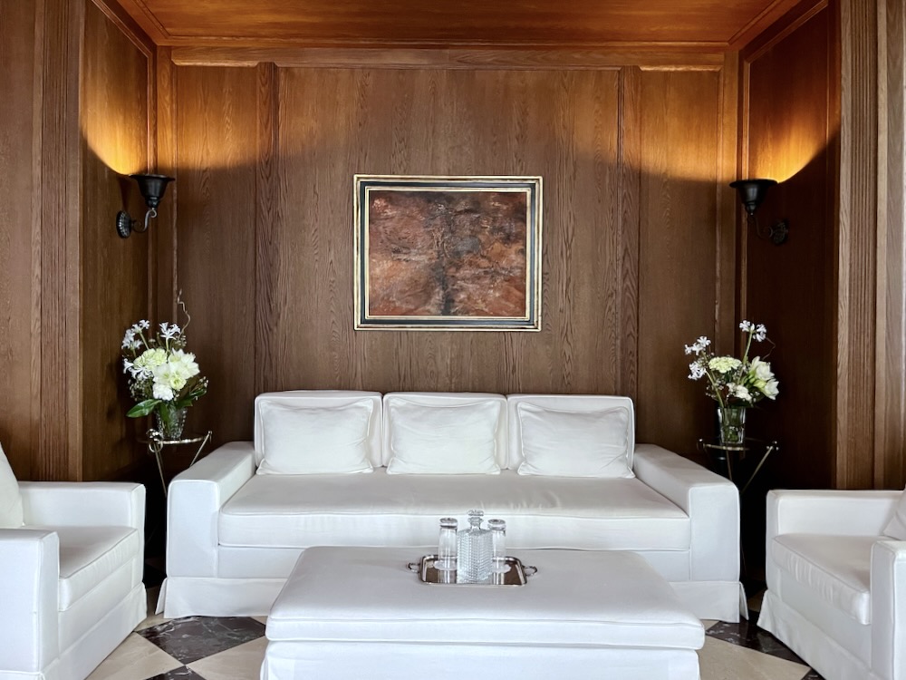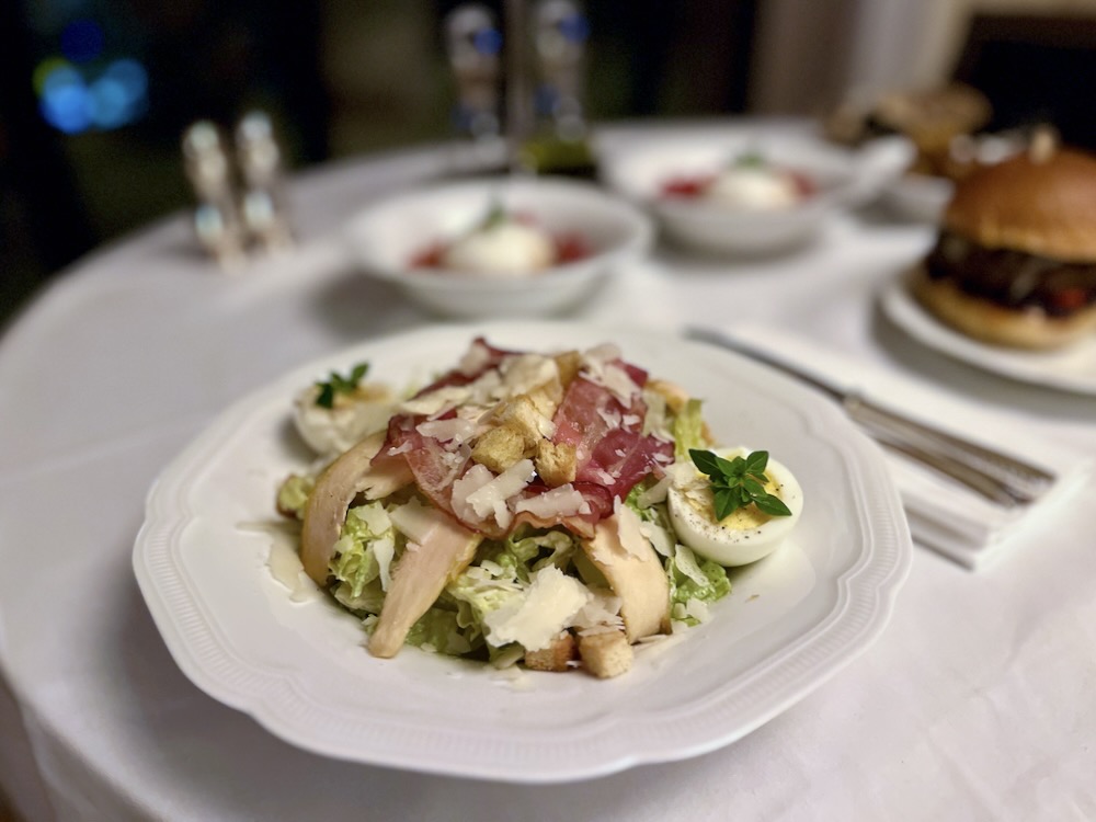 Enjoying such comfort, we opted for a dinner in our room of Caesar salad, burrata and gourmet hamburgers, all served on elegant dishes with gleaming cutlery.
