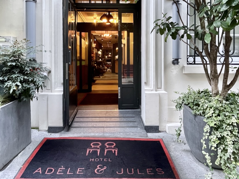 Step across a welcome carpet, the name Adele & Jules hotel woven on it, and you enter a quiet world on a gated street removed from Parisian traffic on the Right Bank’s Grands Boulevards district.