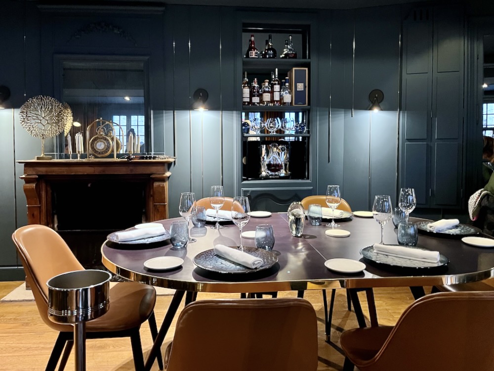 Soft ceiling lighting, polished wood flooring, comfy armchair-like seating and a framed fireplace create a warm and inviting ambience. Large French windows offer clear views over the nearby imposing stone column of the Tour de la Chaine. Owner chef is Grégory Coutanceau who established the restaurant when he was only 22 years old.
