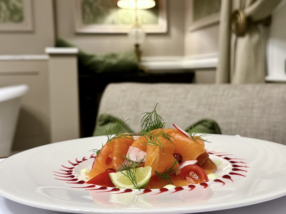 While on a visit, it would be a shame not to indulge in Cabra’s traditional afternoon tea, the elegance of the occasion reflected in the delicate Arklow, Royal Albert and Colclough bone china and gleaming Churchill cutlery. How can one turn down a menu that includes sandwiches of salty smoked salmon with pistachio and pickled red onion, spring Roma tomatoes, bocconcini with basil and forest and button mushroom and chive cream on toasted sourdough, all served on a silver-tiered stand. Not to mention desserts of raspberry white chocolate with eclair, homemade madeleines with orange syrup and walnut espresso cake, and more. And there’s 13 different teas to choose from, including the castle’s own blend, and soothing classical music to listen to.