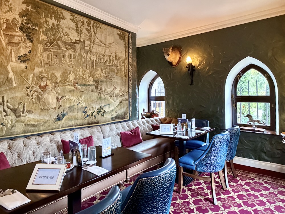How does one begin to describe the furnishings of a luxury castle hotel when the hotel in question has enough paintings for every day of the year?