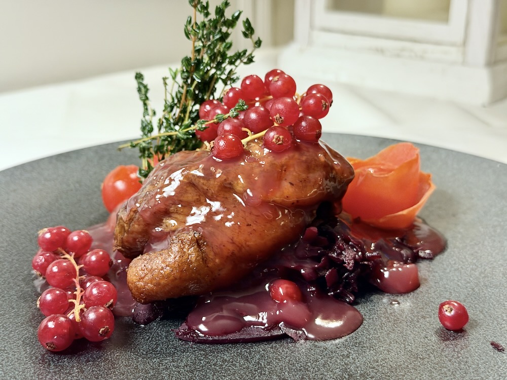 Starters of tempura crab in a satay sauce and a fried Irish brie with a red berry sauce comprised a tasty opener. This was followed by a thick, smooth butternut squash soup with a swirl of parsnip olive oil and a floating boat of bread swept with cream cheese.