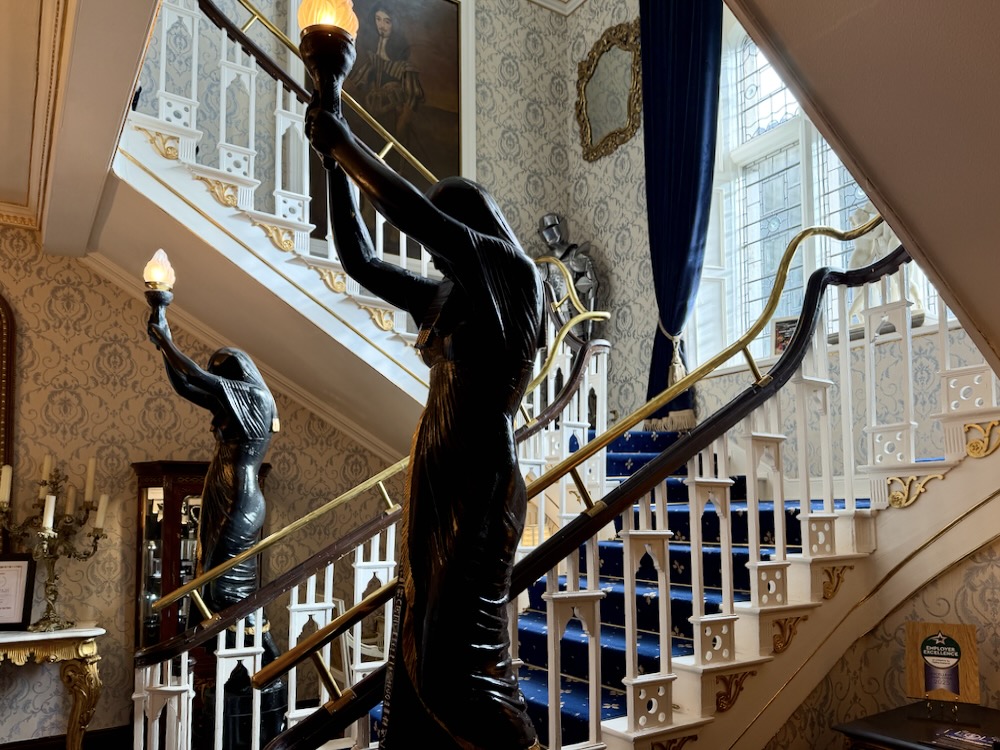 That was the challenging task facing my photographer and I as we ambled around the magnificent rooms of the centuries-old Cabra Castle in north-eastern Ireland. Reflecting its illustrious history, the hotel features several hundred paintings and a vast array of vintage furniture and fixtures of all kinds, including full suits of gleaming armour standing imposingly on a carpeted staircase and an intricate mother-of-pearl coffee-table with intricate marquetry inlaid.